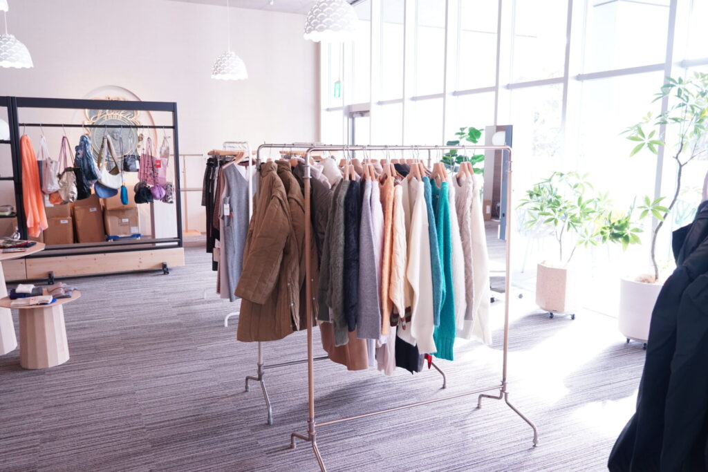 GNJP運営のフードバンク「グッドごはん」を利用するひとり親家庭を対象とした衣服無料提供イベントであるこの企画にはBEAMSをはじめ、NOLLEY’S(ノーリーズ)、ABAHOUSE(アバハウス)のアパレル3社が参加しました。各社が提供した洋服がずらりとラックに並び、会場には試着室も設けられるなど本学のスペースがこの期間だけの特別なセレクトショップへと生まれ変わりました。