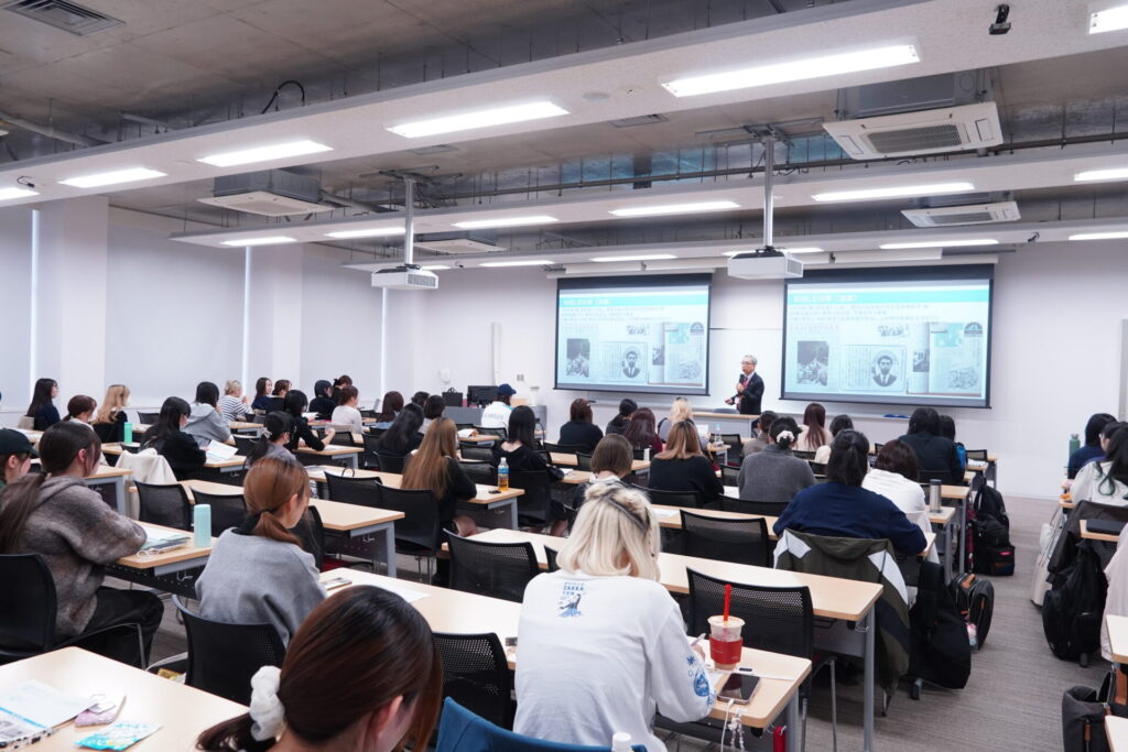 2025年10月24日(金)実践キャリアプランニング(担当:文学部国文学科 深澤晶久教授)にて、アンファー株式会社(以下アンファー)から中溝幸生氏、堀川瑞希氏をお招きし、課題の発表が行われました。アンファーはスカルプDで広く知られている化粧品・健康食品メーカーです。