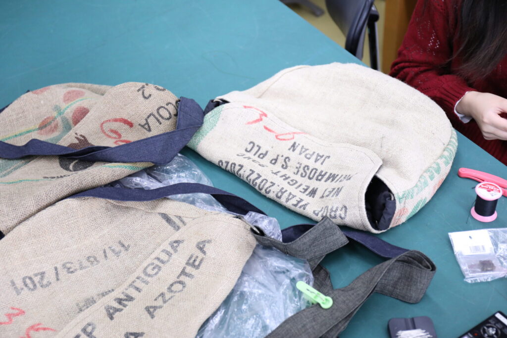 「麻袋はサイズがとても大きく、どんな商品がつくれるのかワクワクしました。一方で、縫製には扱いづらい部分もあり、うまく形にできるか少し不安もありました。