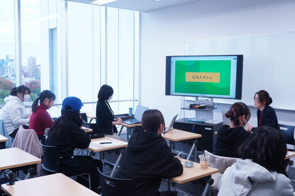 当初、「放送作家」が番組制作においてどのような役割を果たす職業なのか、あまりピンときていなかった学生たちでしたが、制作現場の熱量が伝わってくる刺激的なお話を聞き、質疑応答では全ての受講生から質問が出るほど、興味を惹かれたようでした。また、仕事と子育てを両立しながら、ライフスタイルに合わせて働き方を柔軟に変えてきた高山様のキャリア開拓のあり方も、働く女性のロールモデルとして参考になったようでした。