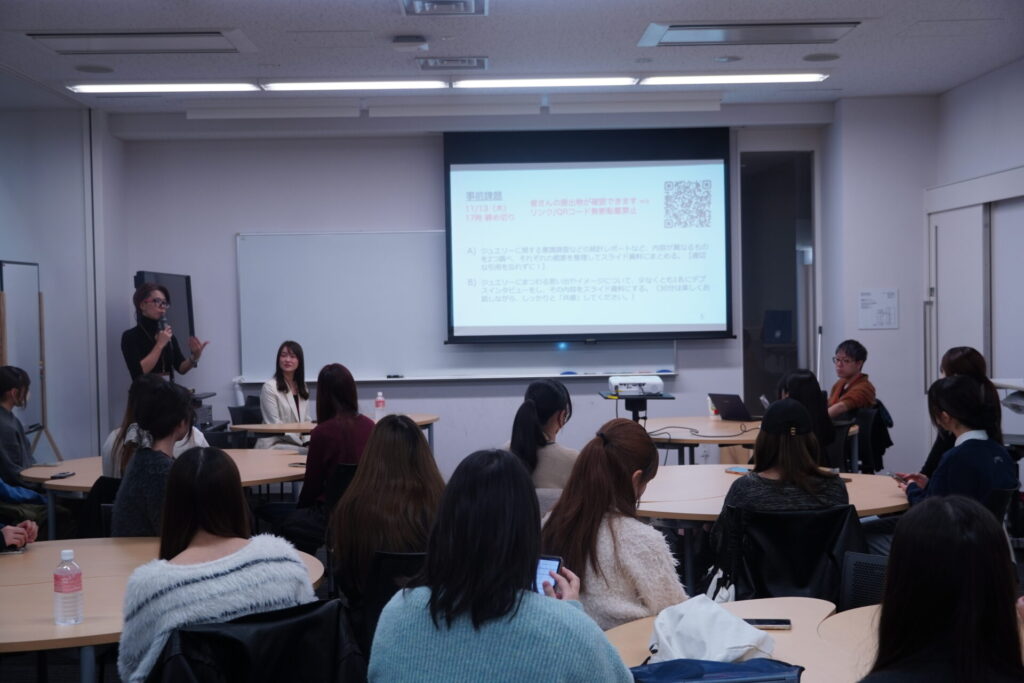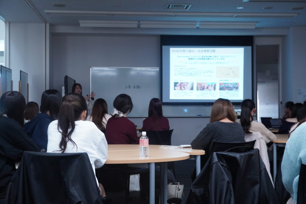「実践デザインラボⅠ」(担当:人間社会学部社会デザイン学科 標葉 靖子教授)の授業では、11月14日より株式会社Brillar(ブリジャール)との特別コラボ授業がはじまりました。ダイヤモンドに負けない輝きを誇る人工石を使ったジュエリーブランドで、小原亦聡氏がゼロから立ち上げた現在も成長を続けている企業です。女性一人が手探りで立ち上げた新しいジュエリーの可能性に、学生たちも強い関心を寄せ、真剣に耳を傾けていました。